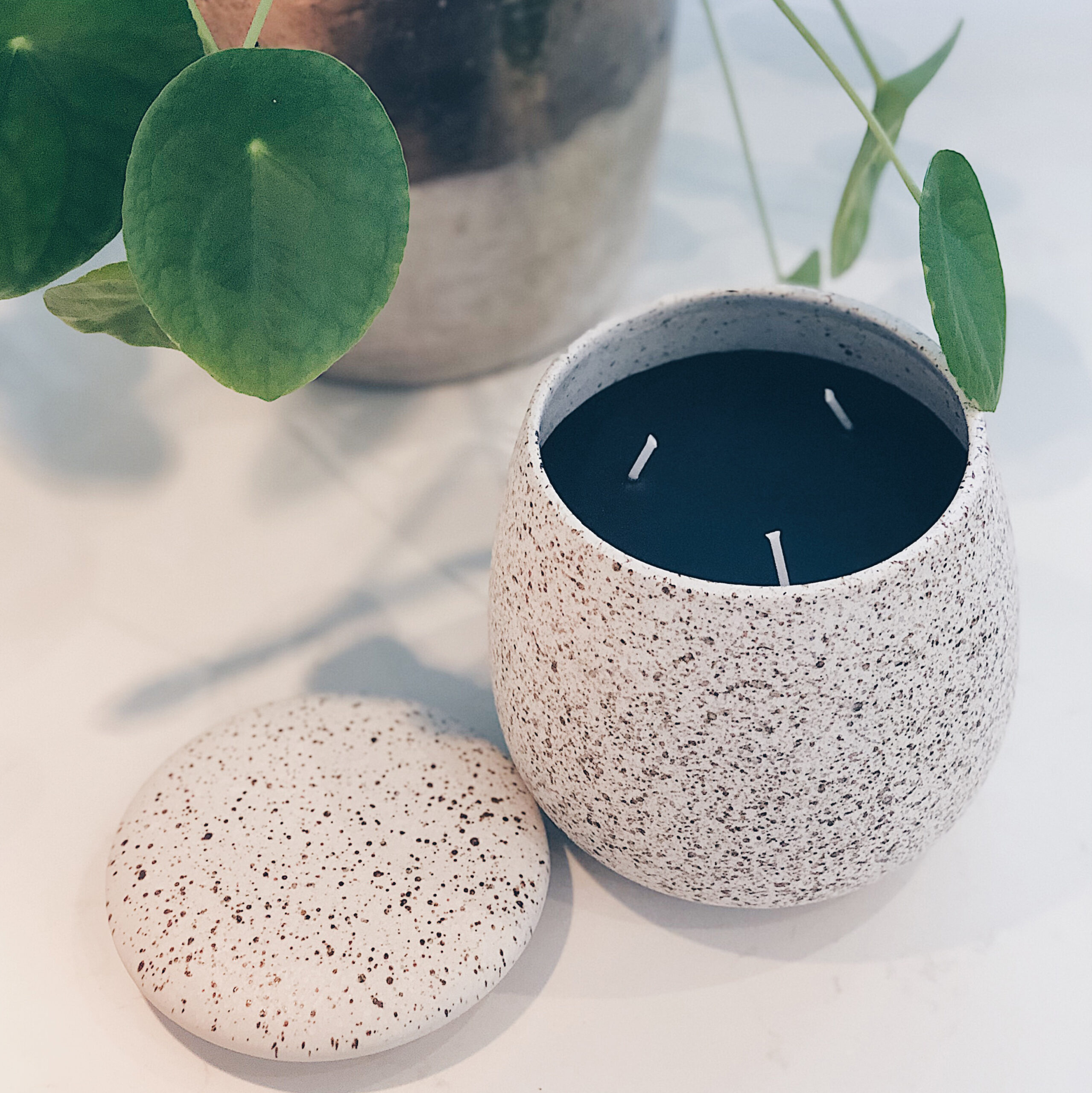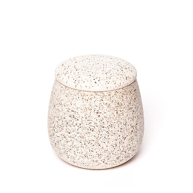 Inspired by Mid Century Modern forms, the Spotty Collection is as pleasant to the eye as it is to your soul. The cover used on the Spotty will reinforces the candle understated elegance. Available in 2 colors.